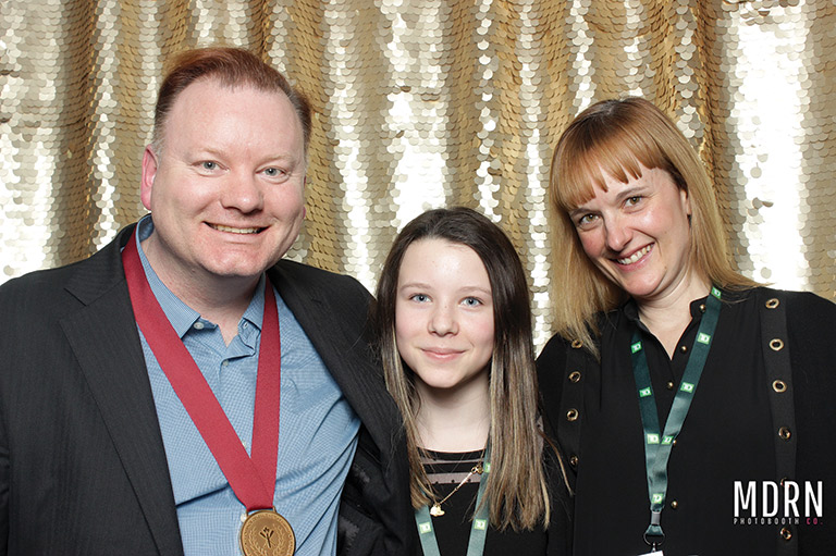 Excellence in Teaching award recipient Jock Martin, his daughter Brynn Martin, and his wife, Lisa Martin, at the History Makers Gala.BRITTANY GAWLEY -