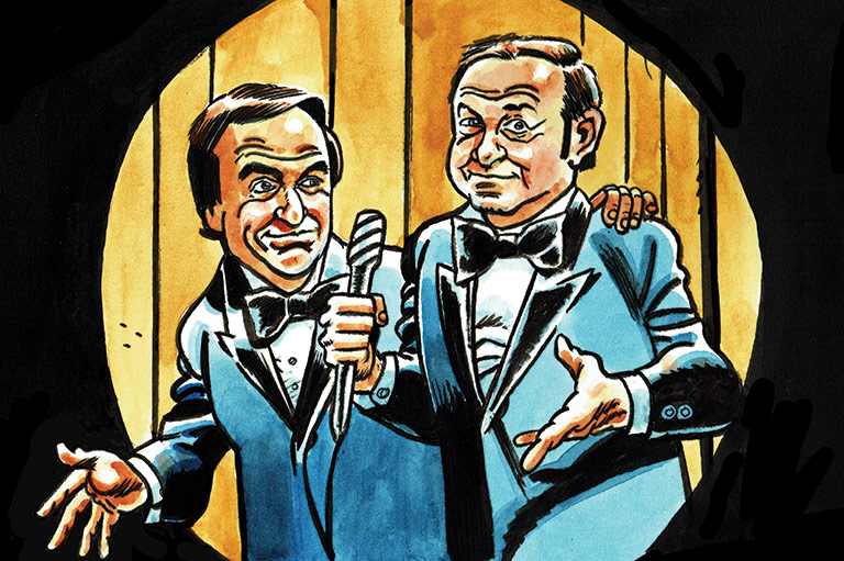 They offered Canadians a version of a classical comic-duo dynamic: Wayne was high-strung and wacky, while Shuster was the so-called “straight man,” offering a sturdy presence for his partner to bounce off. By 1958, the pair regularly appeared on The Ed Sullivan Show (where they’d be featured more than any other comedy duo). Many of their sketches mixed high and low forms of comedy. The classic “Rinse the Blood Off My Toga,” for instance, reimagined Shakespeare’s Julius Caesar as a hard-boiled detective yarn. In 1964, CBC presented six televised specials, Wayne and Shuster Take an Affectionate Look At…, where they highlighted the careers of such classic comedians as W.C. Fields, Abbott and Costello and the Marx Brothers. They were literate and amusing, but not necessarily gut-bustingly funny.