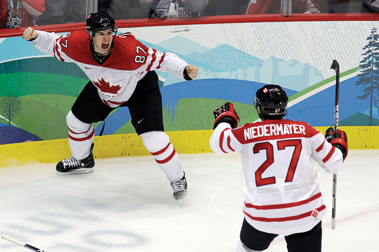 Among several examples here of modern photos that bring to life a shared moment of history in the making is Sidney Crosby’s Golden Goal at the 2010 Winter Olympics in Vancouver. Canada was playing with a 2-1 lead against the USA for the gold medal. With 24.4 seconds remaining, Zach Parise slid the tying goal under Roberto Luongo to force sudden-death overtime. Crosby had played an all-around solid game and scored three times in six tournament matches. More than seven minutes into OT, Crosby makes good on a Jarome Iginla pass, whipping a low shot through Ryan Miller’s pads.