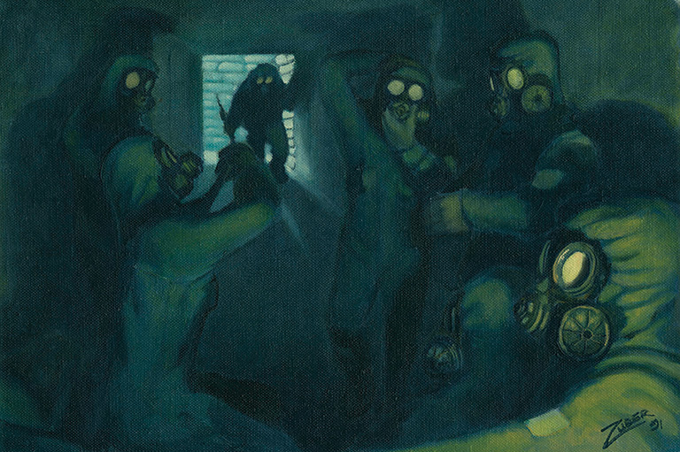 “TOPP High” illustrates Ted Zuber’s experience in a bomb shelter after a Scud missile strike during the Gulf War in 1991.Ted Zuber / Canadian War Museum