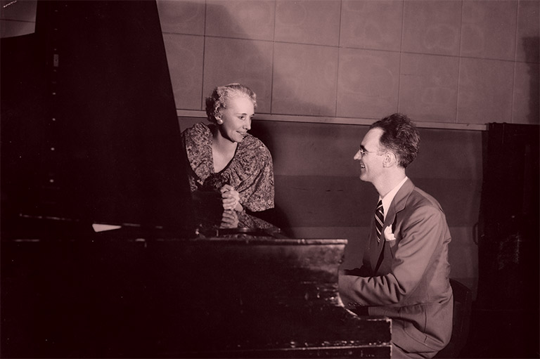 With the economy on the upswing, Harry and Ida Culley found themselves in demand once again. On the newly established CBC Radio, they appeared on Canadian Cavalcade and Music for Moderns, playing compositions that the program schedule described as “highly idiomatic music of today that hovers somewhere between the symphonic and tomorrow’s hit parade melody.” Instrumental pieces such as “Insomnia” by Don Midgely merged classical forms with jazz melodies, often in several movements. Once more, the piano duo adapted to the latest trends, enchanting listeners from across Canada. “It is wonderful that two people can play the piano at the same time and yet the music blends together so beautifully,” a listener from Moncton, New Brunswick, wrote in 1940.
