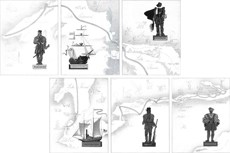 Set of six menus from Canada Steamship Lines, 1946, forms a map of the Great Lakes.Courtesy Claire Stewart -