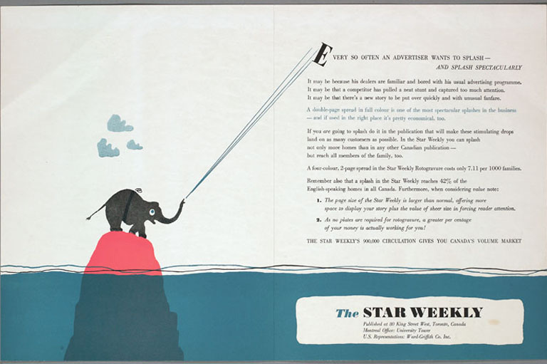 Interior page of a prospectus for the Star Weekly, the Toronto Star’s weekend magazine, 1948.The Royal Ontario Museum -