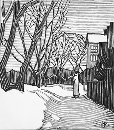 His recent show, Every Picture Tells a Story, presented some two dozen watercolour paintings and drawings, mostly of 20th-century scenes, as part of the Small Works Series at Winnipeg’s McNally Robinson Booksellers. He says the show and launch event gave him the chance to tell stories “directly related to Manitoba and settlement history.”