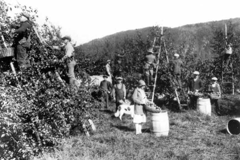 Apple harvest at Abboysford, Quebec, 1930s.Library and Archives Canada -