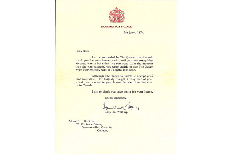 I was so disappointed in not seeing her that when I was well enough, my mother suggested I write to the Queen. So I did. I told her about my strong desire to see her and not being able to get out of bed. Then I invited her to come for lunch the next time she was in Canada.