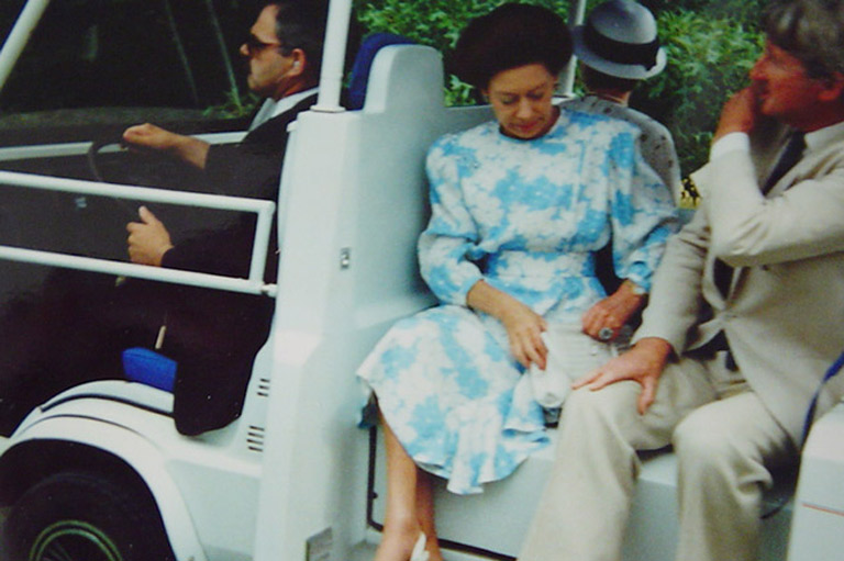 One morning in July 1988 while listening to the radio I heard that Princess Margaret would be visiting the Royal Botanical Gardens in Hamilton, Ontario that day. Living just about a fifteen minute drive from the gardens I decided to see if visiting there would give me a chance to see the Princess. As luck would have it, I was able to get close enough to her to take these pictures with just a simple 35 mm camera. It was quite a thrill to see a member of the Royal family in person. I thought it was quite appropriate that she wore a floral printed dress for the occasion. Once she got on the cart and was whisked away I lost sight of her. These pictures have been in a photo album for twenty-four years and I never thought I would get a chance to share them. Thank you for the opportunity; I live in Tennesee now, but I'm still Canadian at heart.