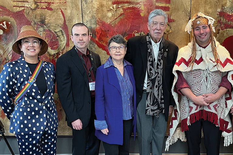 Carrie Lynn Victor, 2021 award recipient, Benjamin Hoy, 2022 award recipient, Helen Hoy, Thomas King, 2022 award recipient, and Chris Silver, 2021 award recipient.PHOTOGRAPH BY MARK REID. -
