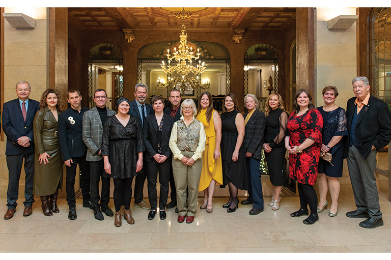 Canada’s History board chair Bruce MacLellan, far left, with 2022 Governor General’s History Awards recipients, left to right, Luisa Fracassi, Jonathan Lainey, Rémi Lavoie, Natasha Camacho, Jacques Fortin, Cathleen Vickers, Benjamin Hoy, Barbara Amsden, Cynthia Bettio, Tracey Salamondra, Pamela Andersson-Naylor, Carla Cooke, Jen Maxwell, Barbara A. Giroux, and Thomas King.PHOTOGRAPH BY ANDREW WORKMAN -