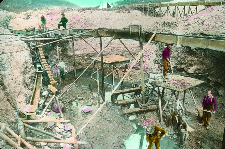 Miners at work at the Eldorado mine in the Yukon, circa 1998-1900.Glenbow Museum -