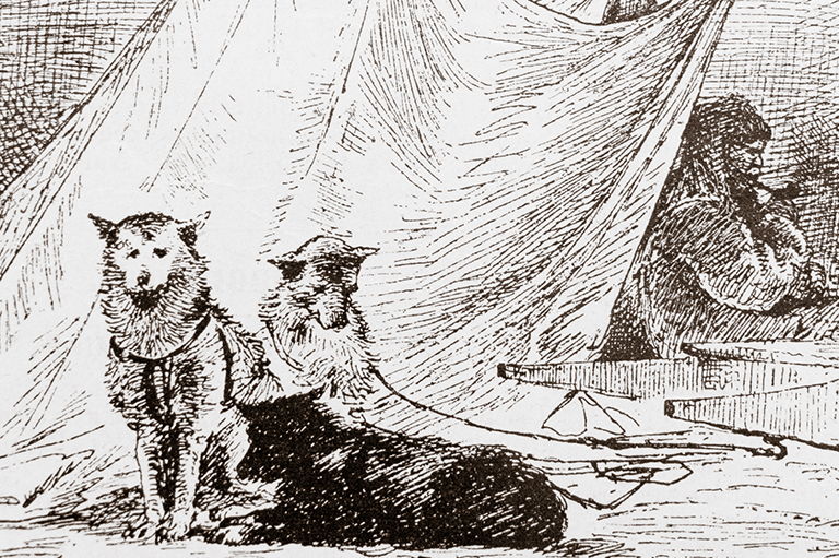 An 1880 drawing shows Tigianniak with his dogs outside his tent.Journal Svetozor -