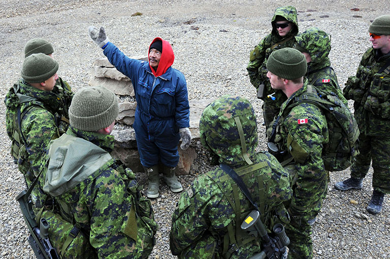 Canadian Ranger Paul Atagootak instructing members of the Arctic Response Company Group on Operation Nanook 10 in Resolute, Nunavut, August 2010.Library and Archives Canada -