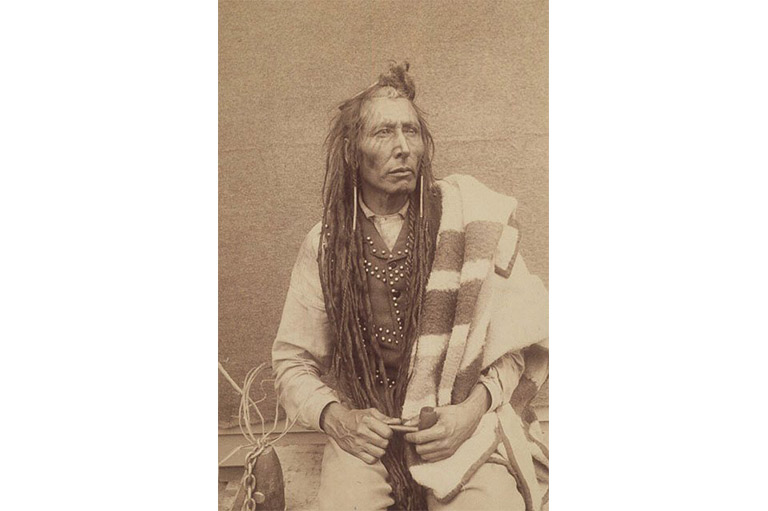 Cree Chief Poundmaker photographed at the police barracks in Regina, 1885.O.B. Buell / Library and Archives Canada / C-001875 -