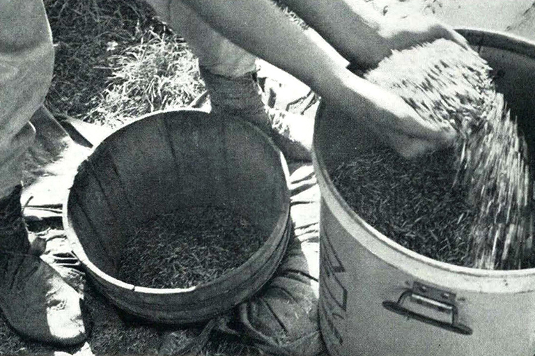 Although Indigenous people made such use of wild rice, both as food and for its trading value, they would not cultivate it though some people, during the gathering, would wrap a few seeds in clay and throw them into the water. But the Menomini, whose very name proclaims their dependence on wild rice (meno, good; min, a grain, seed) would never sow it for they would never willingly “wound their mother, the earth.”