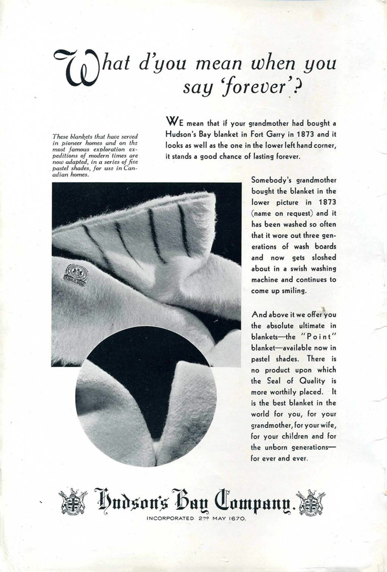 HBC blanket advertisement from the June 1933 issue of The Beaver.Canada's History -