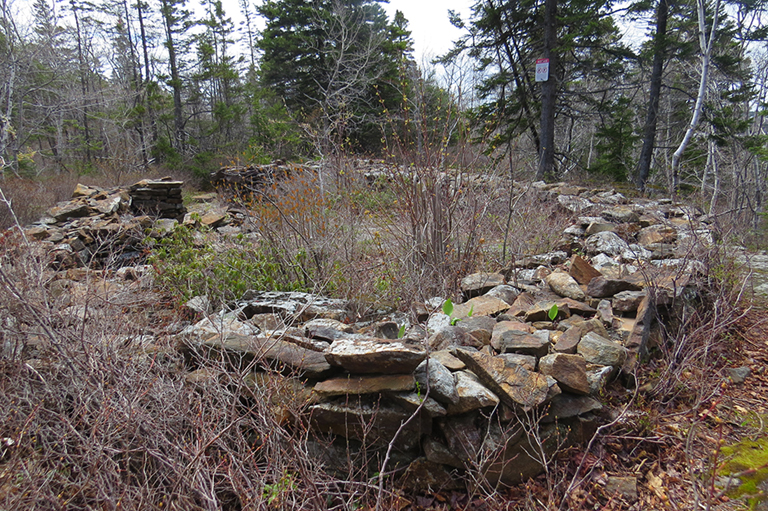 Just outside of Halifax, Nova Scotia, lies a network of archaeological sites that might hold essential clues to understanding the province’s early colonial history. Its most prominent feature is a stone wall about 150 metres long that snakes around the upper parts of an escarpment. Reaching up to two metres high, the construction consists of ironstone slabs carefully stacked on top of one another without the use of mortar. A short walk away, on top of the escarpment, lays a peculiar five-sided enclosure with similar walls a metre high and over a metre thick. A stone staircase, historic roads, and three ironstone quarries can also be found in the immediate area. In 1998 a lichenologist examined the patterns of lichen growth on the main wall and determined that the slabs hadn’t been disturbed for at least 200 years. In other words, these walls were built within decades of Halifax’s founding. Almost nothing else is known about the site. The walls have received a considerable amount of public attention due to their mysterious nature, but this emphasis has tended to obscure two corresponding details. The site’s archaeological potential is substantial; its archaeological integrity, troublingly vulnerable.