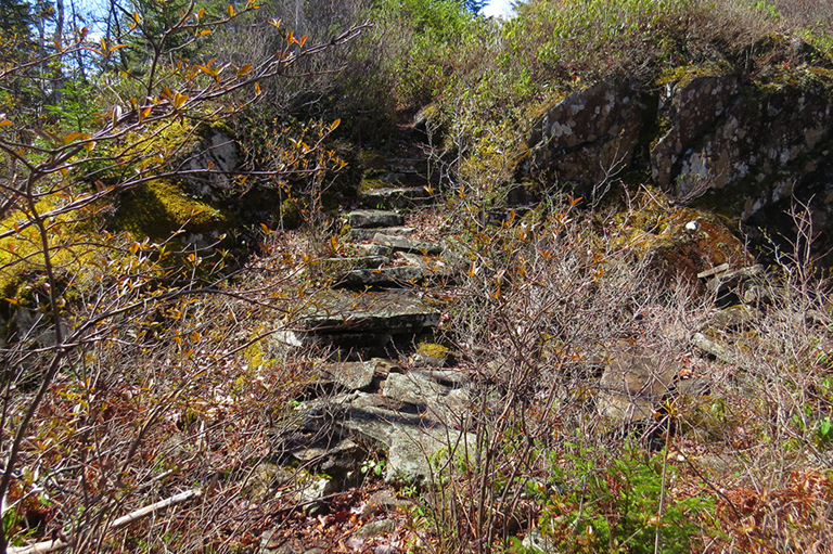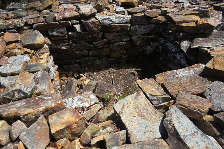 Ironstone stairs ascend a rock face to what is believed to have been the footings of a wooden building.Denise Gow-Morse -