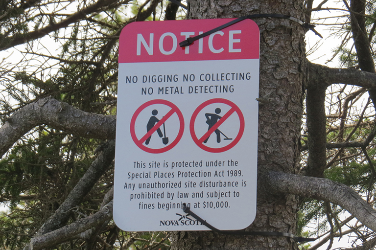 Signs posted to nearby trees prohibit “treasure-hunting.” Any interference with the site could irreparably hinder future archaeological investigation.Denise Gow-Morse