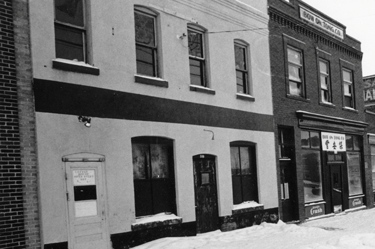 Built around 1907, the Manie Opera Society (also known as the Kwong On Lung Building) is the oldest building in downtown Lethbridge’s Chinatown district and has served as a grocery, household goods store, and restaurant. The two-storey, flat roofed, stucco commercial building speaks to Chinese emigration to southern Alberta in the 1880s and 1890s and the once thriving Chinese Canadian commercial neighbourhood. The Manie Opera Society was designated as a municipal historic resource in 2014.