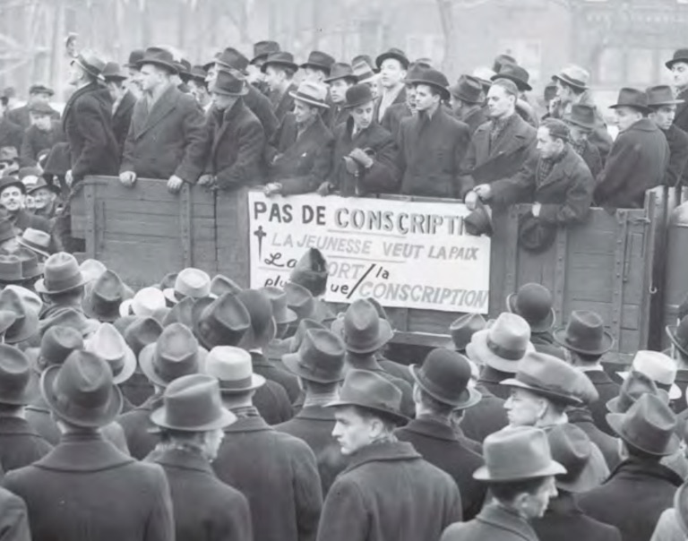 Students of the Université de Montréal protest against conscription in 1939.Library and Archives Canada PA-107910 -