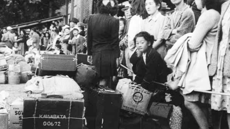 Japanese Canadians at Slocan City, B.C., who were allowed to take only whatever possessions they could carry, await deportation to Japan in 1946.Tak Toyota/Library and Archives Canada C-047398 -