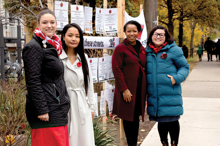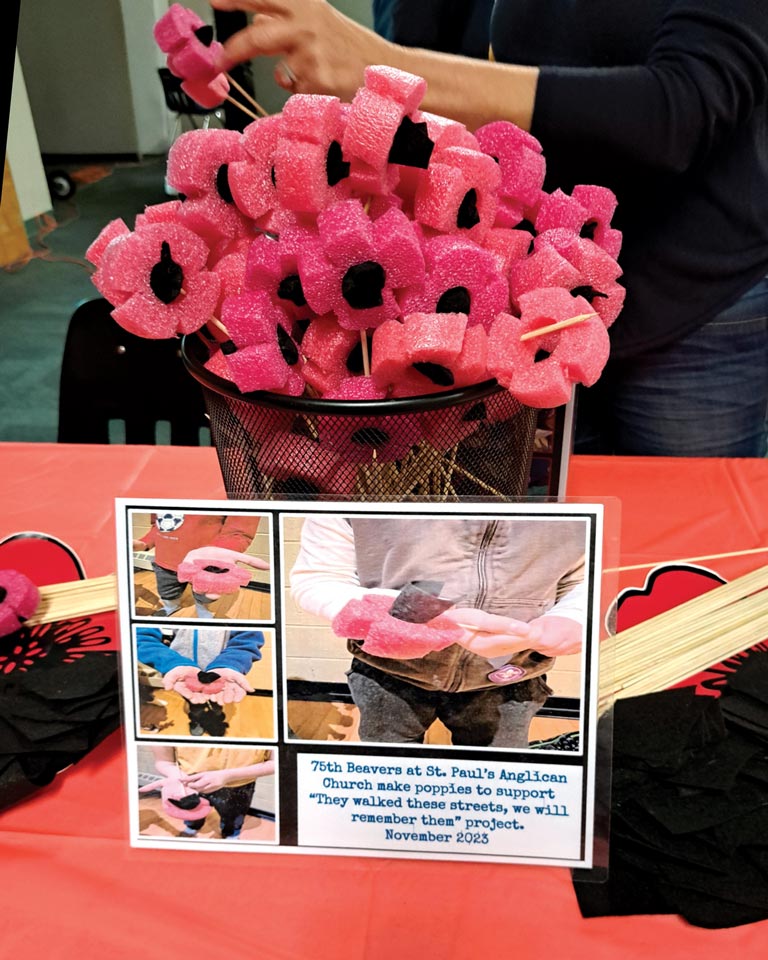 “They Walked These Streets” was born in Toronto in November 2020, when Whitfield got a call from her colleague Ian Da Silva. Pandemic restrictions had closed down many public remembrances, but Da Silva and his own young children had discovered they could slice pieces from an old red pool noodle and make each one into a charming poppy on a bamboo-skewer stem. They were thinking of holding a personal memorial on their front lawn by “planting” some of these.