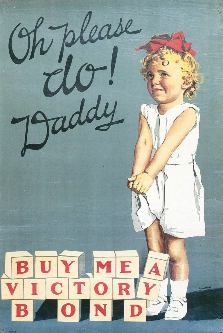 Parents are urged to invest in Victory Bonds. Poster depicts child saying "Oh please do Daddy! Buy Me a Victory Bond."Library and Archives Canada -