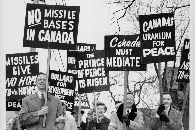 Peace protesters march during an Easter parade in Toronto, March 29, 1959, unknown photographer for Federal Newsphotos of Canada.The Rudolph P. Bratty Family Collection, Ryerson Image Centre -