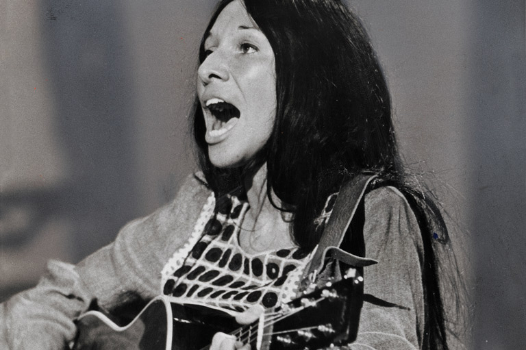 Buffy Sainte-Marie sings on the Johnny Cash Show circa 1969, unknown photographer.The Rudolph P. Bratty Family Collection, Ryerson Image Centre -
