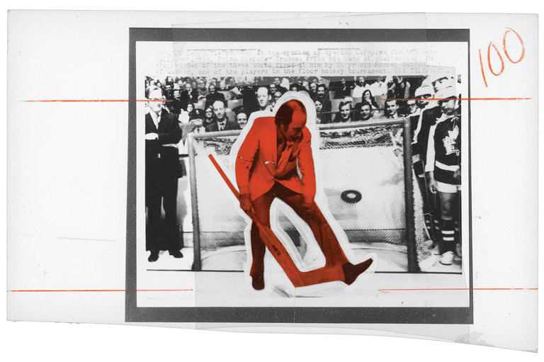 Prime Minister Pierre Trudeau tends goal, June 9, 1971, unknown photographer for United Press International and the Associated Press.The Rudolph P. Bratty Family Collection, Ryerson Image Centre -