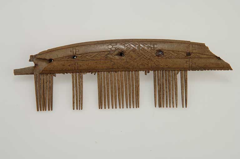 While several intricate objects celebrate traditional Norse religious figures, such as Odin and Frigg, others demonstrate the transition to Christianity, which the Norse adopted enthusiastically. Perhaps to hedge bets while that transition was underway, some items combine the two, as on the Thor’s hammer decorated with crosses.