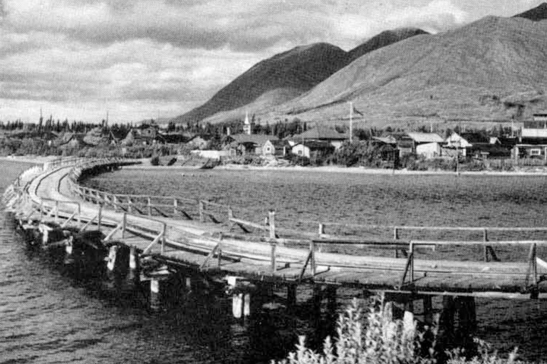 Her road leads over the wooden bridge at the settlement of Carcross.Rosemary Gilliat -
