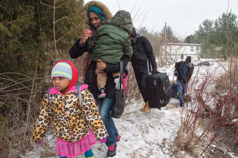 Refugee claimants from Eritrea, bound for Canada, cross the border between New York state and Quebec in March 2017.The Canadian Press