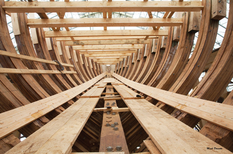 The planks muscled into place to form the outer hull this time around are angelique from Suriname in South America. “They’re naturally resistant to rot and decay, very dense, very hard,” Hutchinson explained. The planks contain resins that repel marine organisms that bore into other woods.