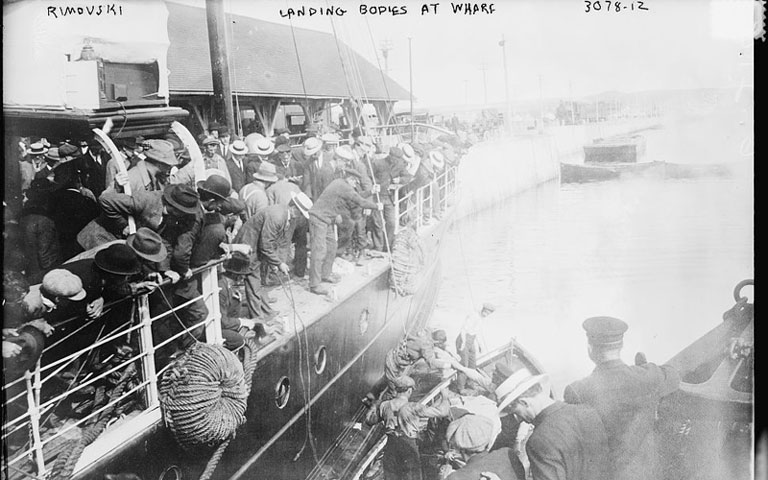 Though less storied than the Titanic, the sinking of the Empress of Ireland in 1914 remains the largest peacetime maritime disaster in Canada’s history. The Liverpool-bound passenger steamer sank in the turbulent waters of the St. Lawrence River within minutes of being accidently hit on the starboard side by a Norwegian collier in dense fog near Rimouski, Quebec. Of the 1,477 people aboard, 1,012 perished.
