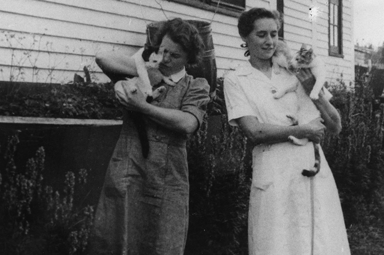 Nurses Ivey Durley and Win Burgess with friends at Flower's Cove, Newfoundland, circa 1940s.Memorial University -