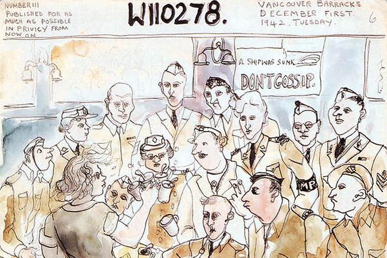While waiting for the army to recognize her talents as an artist, Molly began a sketch diary entitled WI10278 (her regimental number). Describing the document many years later, fellow war artist Charles Comfort wrote, “I first saw this unique diary in its original form and was much impressed by its unorthodox format. The essence of the diary and the events, the humour and the reality it conveys bring us Molly's zest for life and her special way of looking at things.”