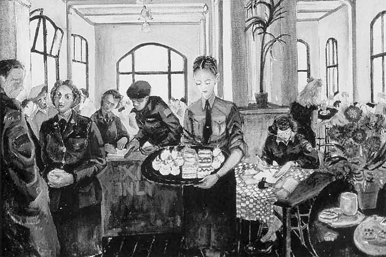 "Canteen, Nijmegen, Holland." Oil and ink on canvas, 1945.Canadian War Museum / Beaverbrook Collection of War Art / AN 1971 0261-6172 120170 -