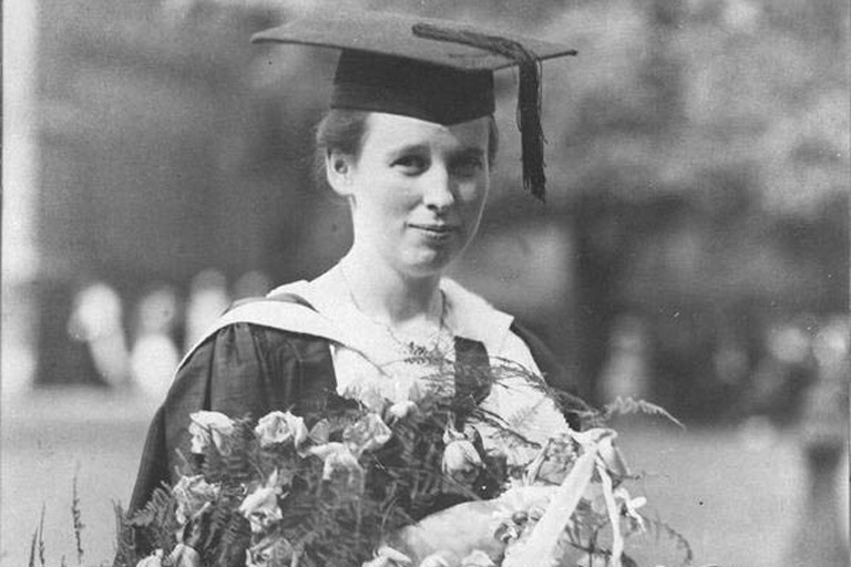 Esther Marjorie Hill, the first woman graduate in architecture in Canada, on her graduation day, June 4, 1920. Her peers cheered but her professor refused to attend the ceremony.University of Toronto Archives, 2002-17-4MS -