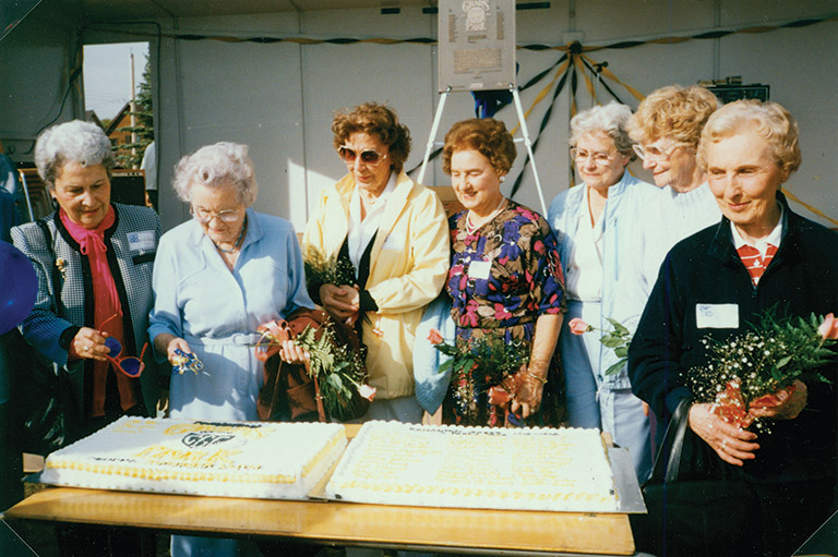 On the night of June 5, 1940, more than 6,000 devoted fans filed into the Edmonton Arena to watch the Grads play their last game, which was against the Chicago Queen Anne Aces. It was the third of an exhibition series, and having already won the first two games, the Grads finished it off with yet another solid win. The next evening, the banquet room of the Corona Hotel was packed with some 250 guests who were there to honour the team’s accomplishments and mark its end.