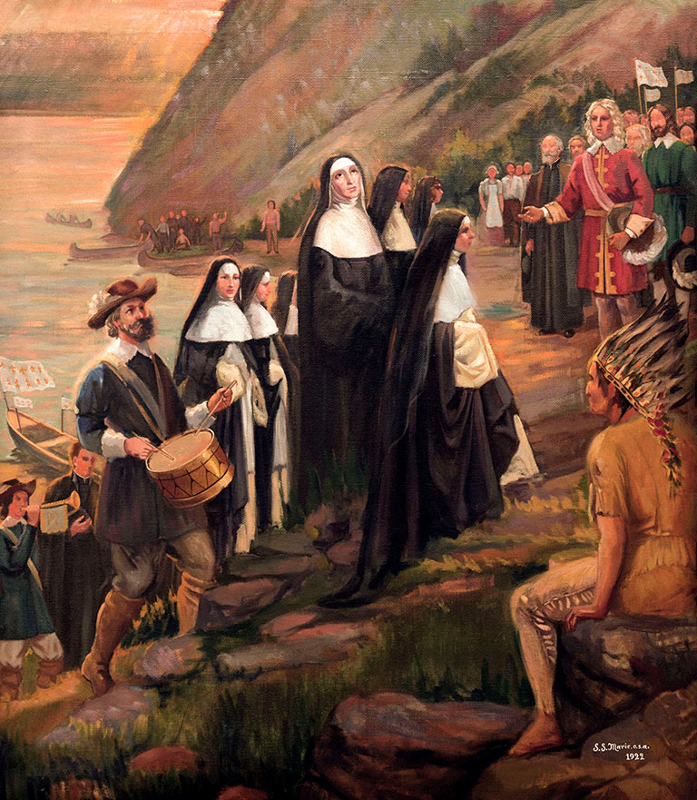 It would have been a challenging place for the teenaged Hiroüin to live and work. She had come from an institution praised by a Jesuit in Canada as “one of the best-run in Europe.” She arrived at a small stone structure that served as both a hospital for local Indigenous people and a dwelling for six Augustinian sisters. Not only was the hospital outside the main French settlement at Quebec, it was also separated by a hill — and located one cove over — from the chapel and Jesuits’ house that formed the religious core of the Sillery mission.