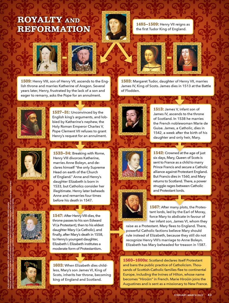 The obituary of Marie Hiroüin takes us into questions of what it meant to be Scottish in the seventeenth century, of how religious reformation shaped political allegiances in both Europe and North America, and of why missionaries were so important to colonial efforts in New France. It illustrates how the life path of a single individual can be shaped by the whims of kings and by sweeping geopolitical movements. And it hints at an ancestral connection between a humble nursing sister in Canada and the highest noble houses of Europe.