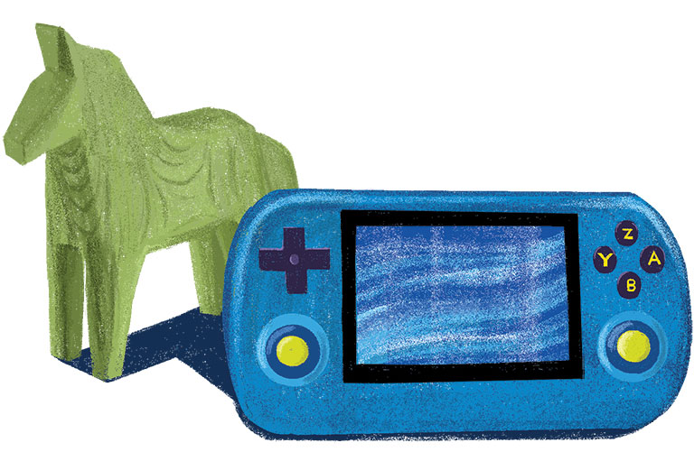 Her twin brother Jacob yelped. “No! Hit the up arrow! The up arrow!!” The tiny dinosaur on the screen keeled over.