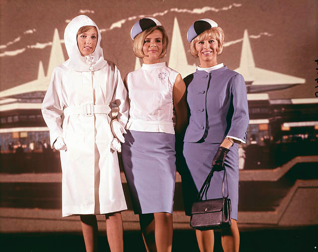 Three women model hostess uniforms in 1965.Library and Archives Canada & Expo 67 Mission Impossible -