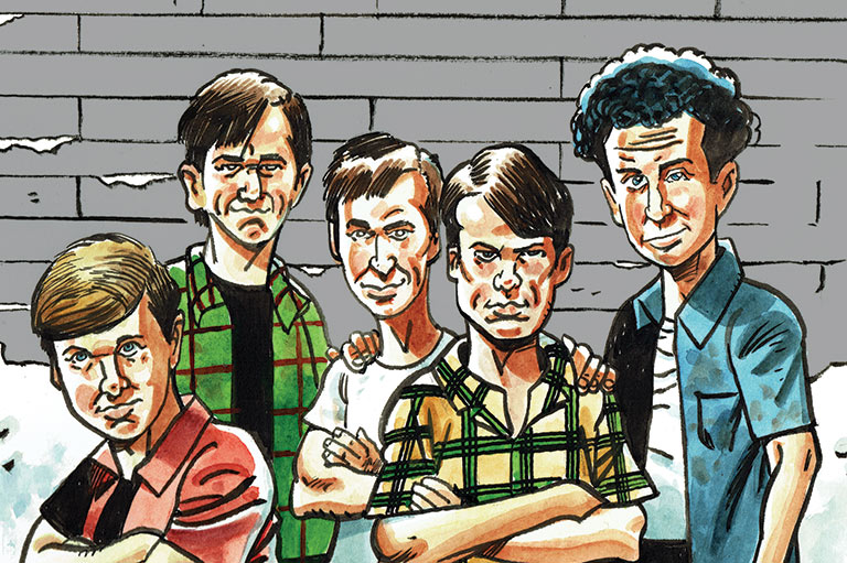 Lorne Michaels himself would return home to help launch another cult-comedy phenomenon. Veterans of the improv and live-sketch circuit, The Kids in the Hall were a five-man absurdist troupe whose weird outsider humour would find a place on TV both here and in the United States. Their namesake sketch show aired for five seasons between 1989 and 1995 on CBC and HBO (and, later, CBS), followed by a little-loved 1996 feature film, plus several television and streaming revivals. This not-so-happy gang was ironic, acerbic and vaguely punk, geared to the tastes of the emerging grunge/gen X culture. The Kids — Bruce McCulloch, Mark McKinney, Dave Foley, Scott Thompson and Kevin McDonald — thumbed their noses at the usual national reverences, mocking parents, police, suburban ennui and even the Canadian state-funded TV system (as in their memorable sketch “Screw You, Taxpayer”).