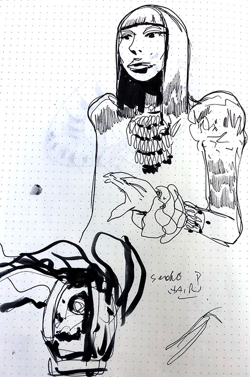 When GMB Chomichuk receives a creative brief, he immediately sketches to "capture the shape language" that comes to him first. This is one of his drawings of Marie-Josephte Corriveau for "Macabre Discovery" (December 2018-January 2019), an article about the witch of Quebec folklore.GMB Chomichuk -