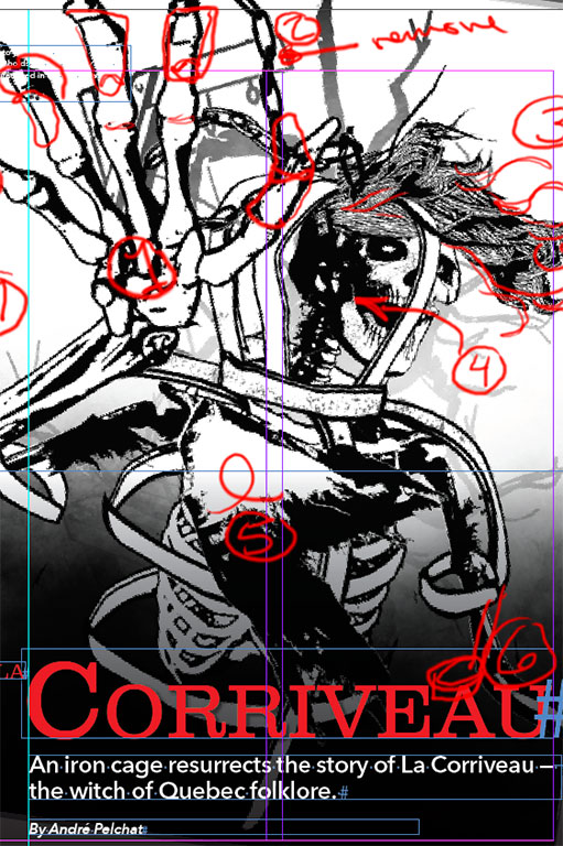 Art director James Gillespie labels the image with numbers and provides the artist with a list of bullet points offering suggestions for edits.GMB Chomichuk -