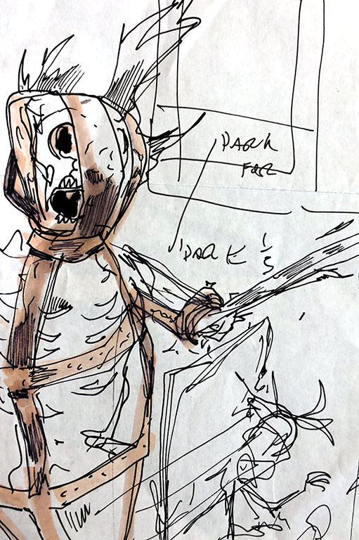Illustrator GMB Chomichuk creates thumbnail sketches to visualize the composition of the final piece.GMB Chomichuk -