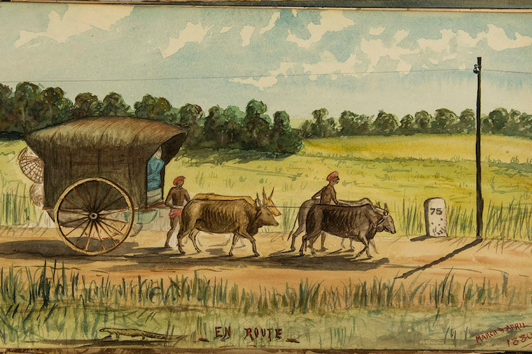 "En Route March & April 1880." This painting by Francis Fitz Roy Dixon is of the oxcart which transported the Dixon family to the coast of Ceylon for their journey to North America via EuropeCourtesy of Jon Dellandrea -