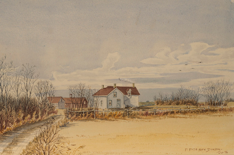 Fifteen or so of Dixon’s paintings can be found in the collections of the Royal Ontario Museum, the Library and Archives of Canada, the Manitoba Provincial Archives, the Winnipeg Art Gallery and a private collection or two.